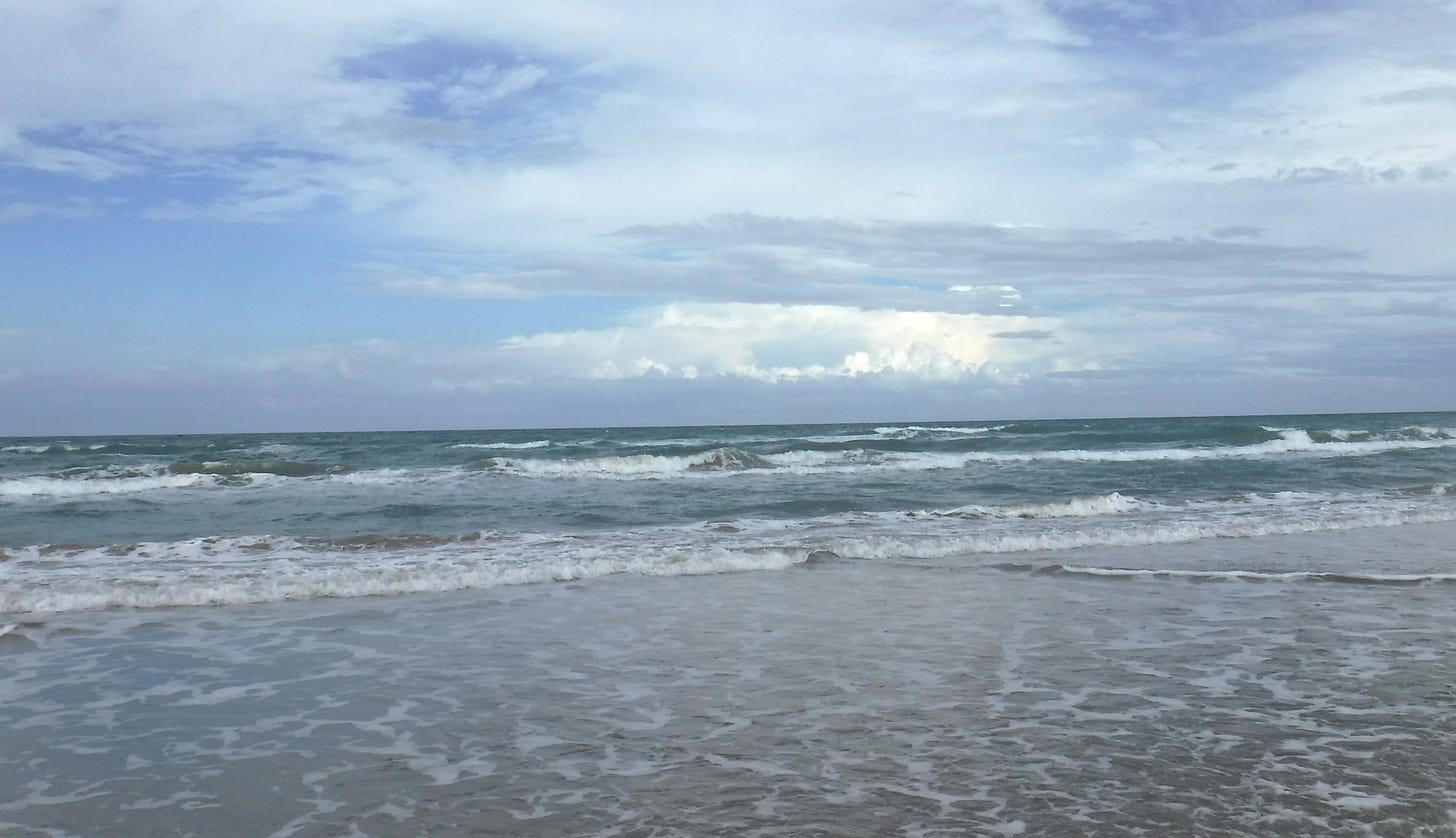 As I sat on the beach later (sans cellphone, sans computer), I did what I always do: I considered the sea, put my thoughts to it …and I could see that the ocean before me is so much like God’s grace. We cannot even begin to fathom the immensity of God’s grace…can’t see the other side…can’t even imagine all the goes into and thrives in this grace.